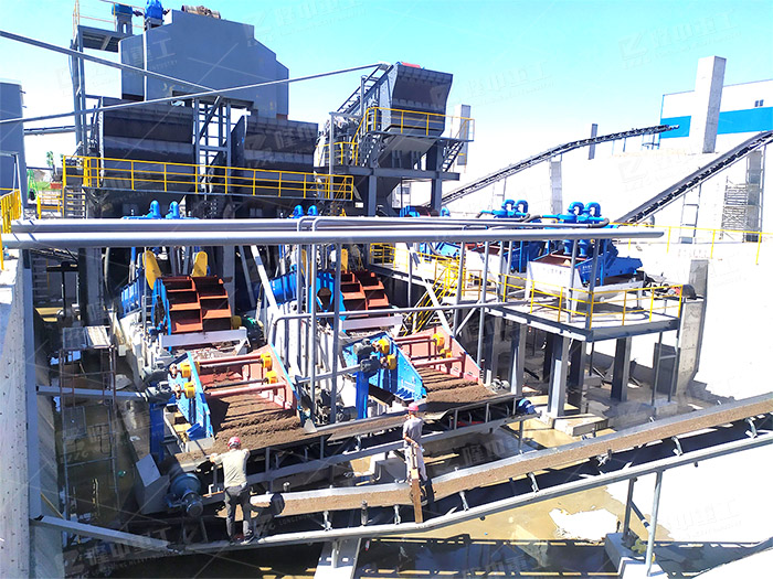 LZ系列細(xì)砂回收機(jī)工作過程:渣漿泵將砂水混合物高壓輸送至泥砂分離器,經(jīng)過高壓離心分級濃縮的細(xì)顆粒物料,經(jīng)沉砂嘴傳送給脫水篩,經(jīng)振動篩高頻脫水后,細(xì)砂與水有效分離,精品細(xì)沙由高頻脫水篩排入皮帶。污水、泥等雜物經(jīng)緩沖返料箱排入沉淀池。