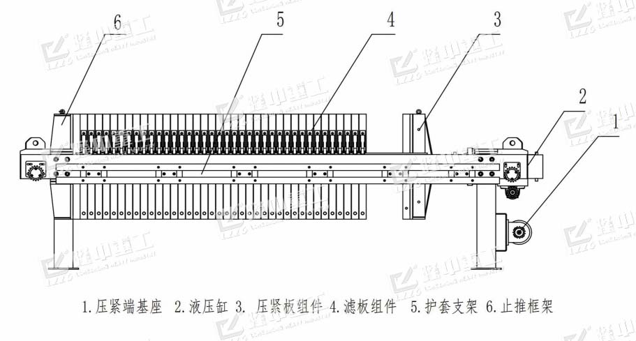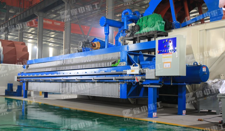 廂式壓濾機(jī)是利用濾布兩邊的壓力差,迫使物料中的J大部分水分透過(guò)濾布,流出機(jī)體外,而物料被阻隔在濾室內(nèi)形成濾餅,以達(dá)到過(guò)濾的目的。由于在過(guò)濾過(guò)程中濾布兩邊存在著較大的壓力差,提高了過(guò)濾速度降低了濾餅的含水率。